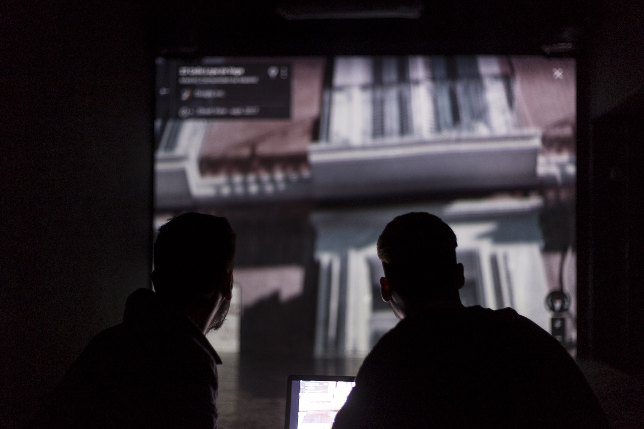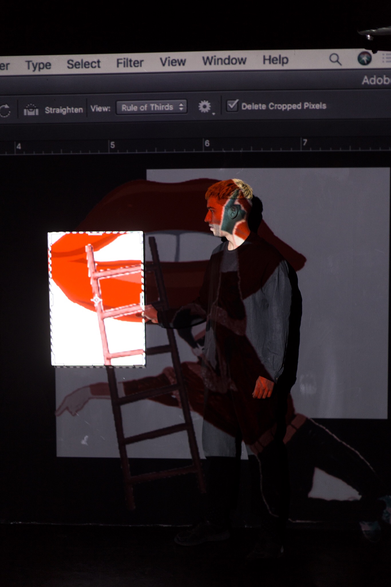 En la pieza jugamos a poner cosas juntas y a separarlas, recortamos wallpapers, hicimos zoom sobre webcams en directo, convertimos el teatro en un runway, paseamos por Google Maps y vimos videoclips con otras pistas de sonido superpuestas.